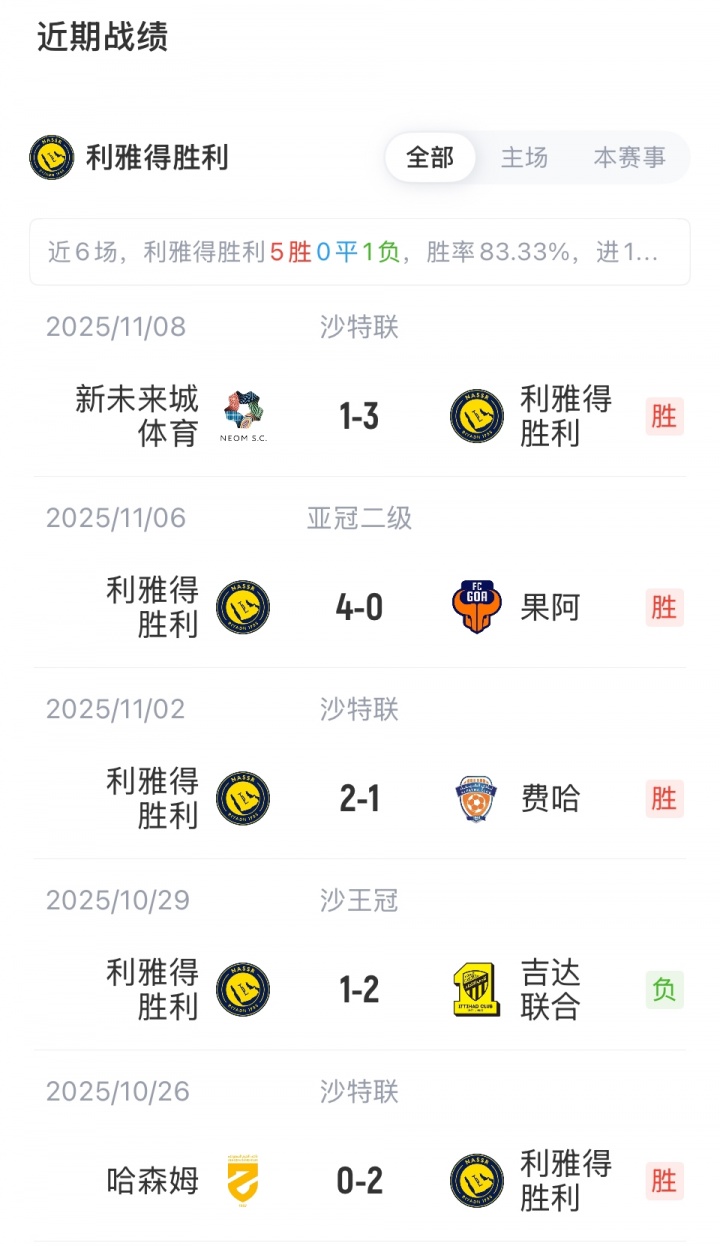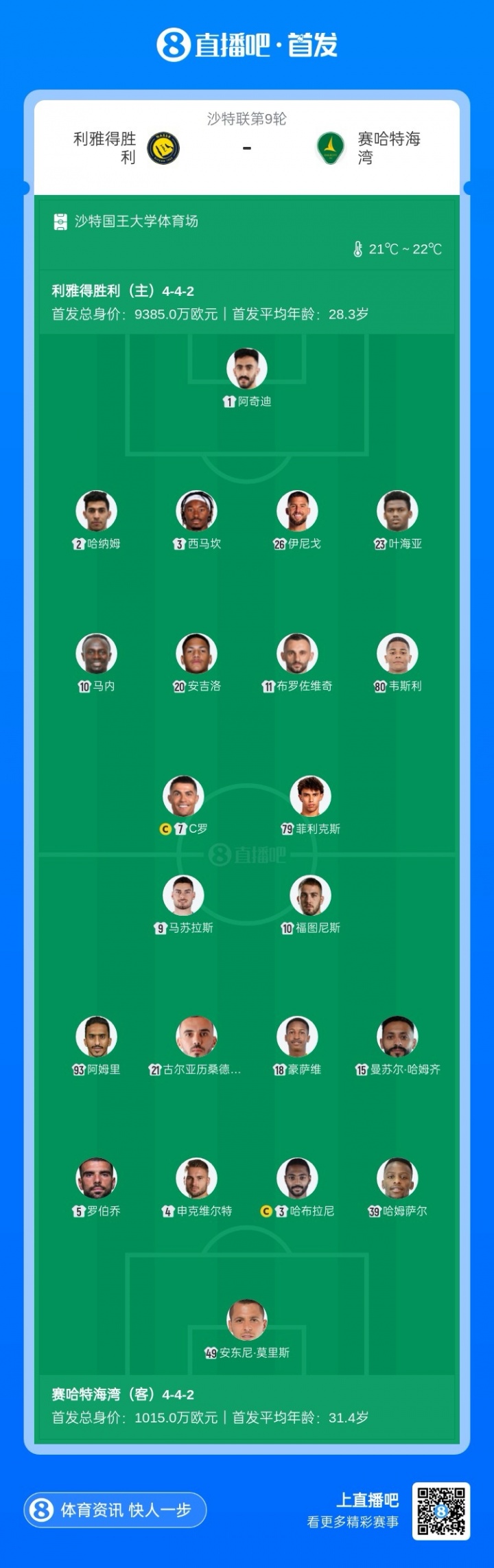 利雅获得手首发:1-阿奇迪、2-哈纳姆、3-西马坎、26-伊尼戈·马丁内斯、23-叶海亚、11-布罗佐维奇、20-安吉洛、79-菲利克斯、80-韦斯利、10-马内、7-C罗