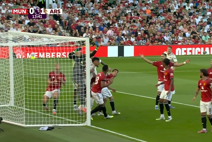 08月17日讯 英超首轮焦点战,曼联对阵阿森纳。第13分钟,赖斯角球开出,门前门将巴因德尔迁徙受限,卡拉菲奥里抢到契机近距离头球破门,阿森纳先进一球,1-0教悔曼联。