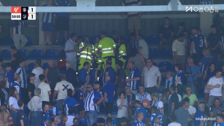 看台出现医疗紧迫情况,马竞vs阿拉维斯比赛暂时中断