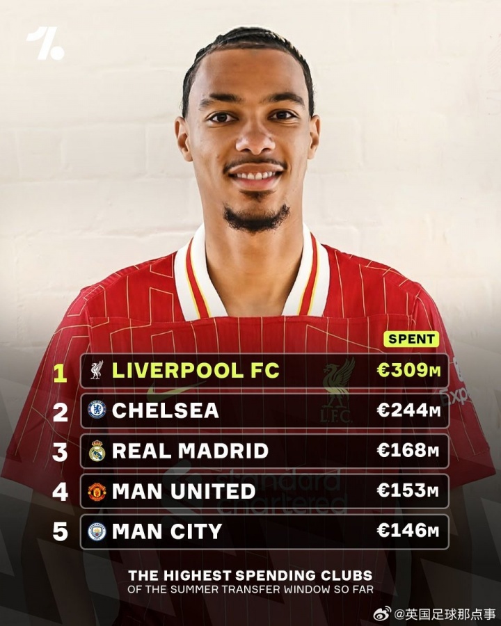 > 利物浦成为本年夏窗首支支拨卓越3亿欧元的球队🤑