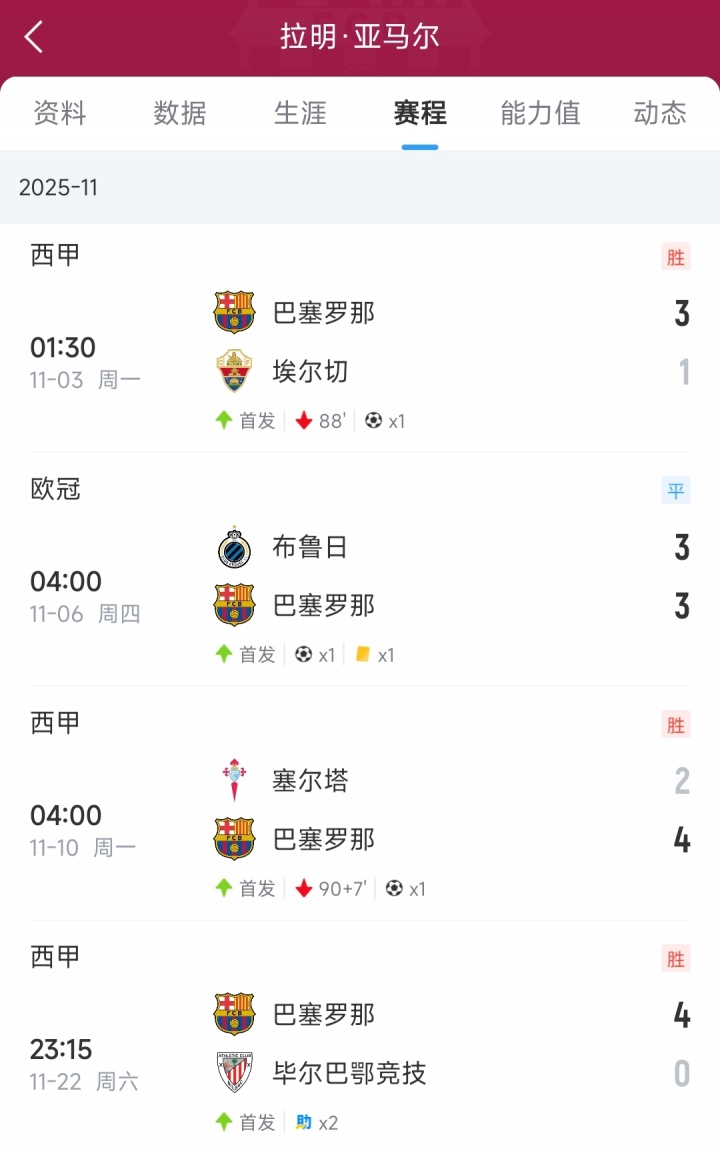 😳心中无女东谈主踢球当然神?亚马尔11月初仳离,近4场3球2助