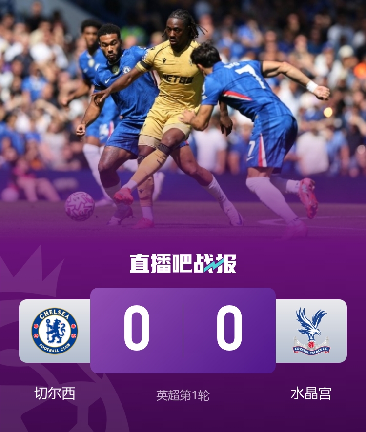 08月17日讯 刚刚截止的英超首轮一场比赛,切尔西主场0-0闷平水晶宫。