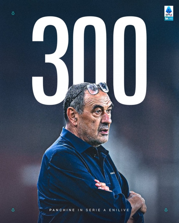 意甲官方社媒晒出萨里海报,祝愿萨里握教意甲300场里程碑。