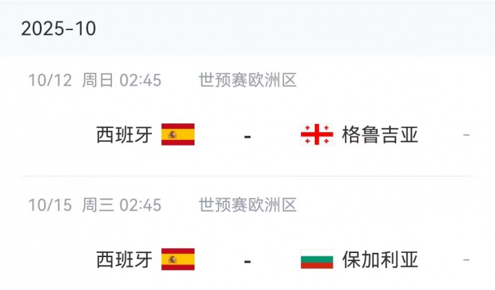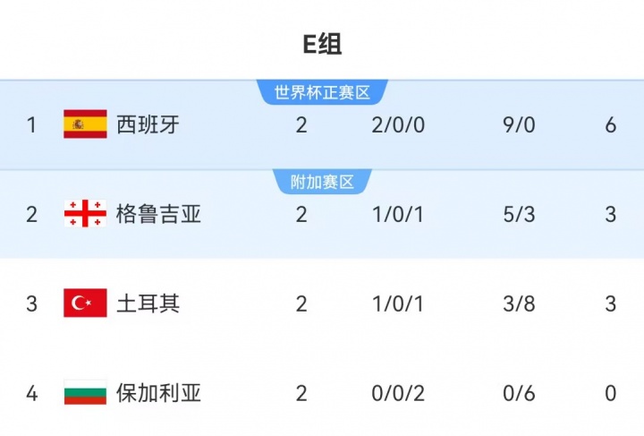 西班牙本月将进行两场世初赛欧洲区比赛:10月12日主场迎战格鲁吉亚,10月15日迎战保加利亚。当今西班牙谢世初赛欧洲区E组2战全胜排行第1。