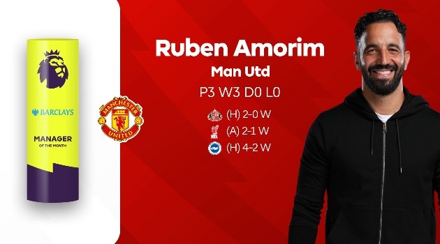 阿莫林成为了第6位得到英超月度最好主帅的葡萄牙素质,此前有努诺(7次)、穆里尼奥(4次)、博阿斯(2次)、布鲁诺-拉热(1次)以及佩雷拉(1次)。