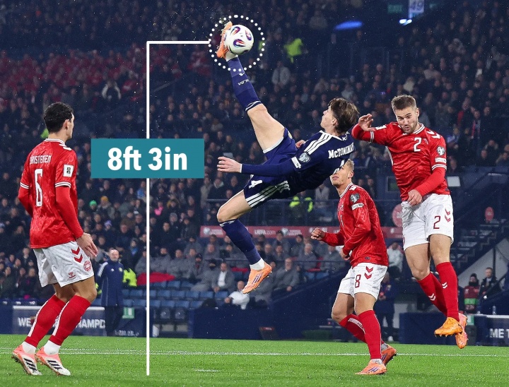 欧洲区世初赛小组赛末轮,苏格兰4-2驯服丹麦,晋级2026寰球杯,麦克托米奈在比赛中打入一粒精彩倒钩。