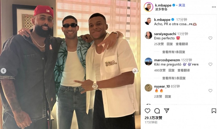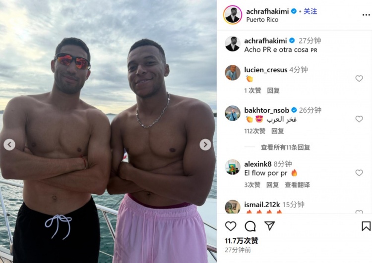 朋友!姆巴佩&阿什拉夫晒共同度假照:波多黎各确凿一鸣惊人!