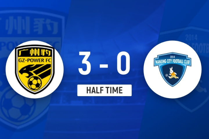 半场-广州豹暂3-0南京城市 尼康1射2传罗萨贴地斩韩轩头球破门