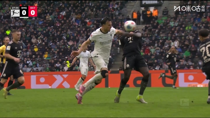 10月25日讯 德甲第8轮,拜仁客战门兴,比赛第28分钟,于帕与对方缠宣战抢球权,倏得一掌把拍子走,因此吃到黄牌。