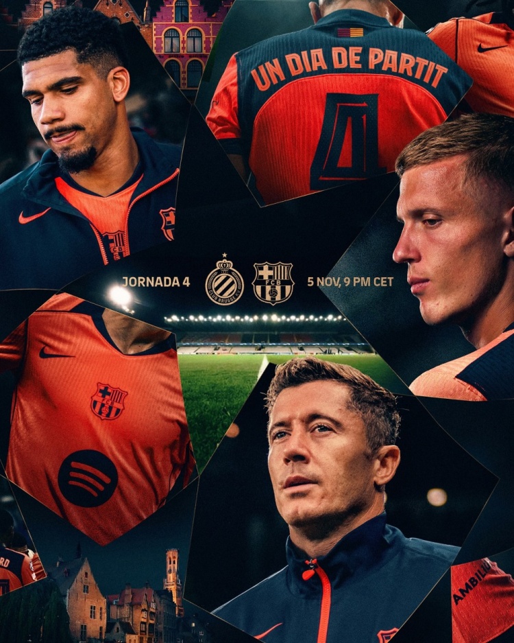 巴萨官方社媒发布了为此役制作的海报,莱万、奥尔莫、阿劳霍出镜,配文:“欧冠比赛日!”