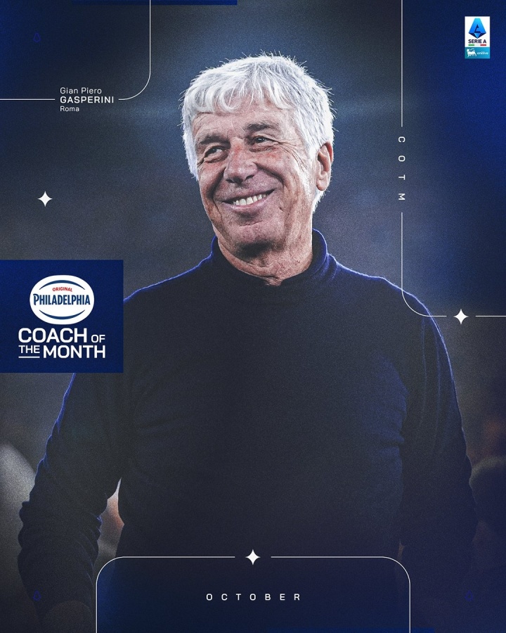 意甲联赛官方文书,加斯佩里尼荣膺联赛10月最好讲授,该奖项的奖杯将在本周日罗马对阵乌迪内斯的赛前颁发给他。